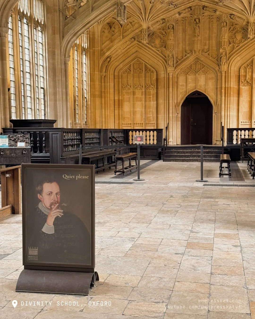 Above it is Duke Humfrey’s Library, aka the Hogwarts library. The library is the oldest reading room of Oxford University, formed in the 1450s and named after the Duke of Gloucester who donated 281 books after his passing. That was plenty of handwritten books as the printing press hadn’t been invented. Over the centuries, the library grew and expanded and is the university’s central library.