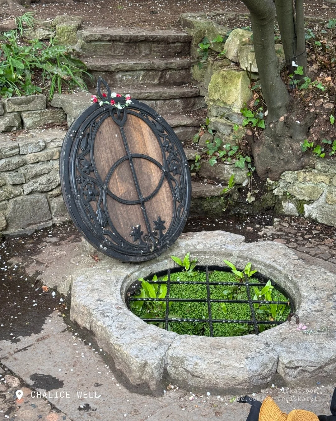 It is home to the Chalice Well, an iron rich spring also known as the Red Spring. It is Britain’s oldest holy well, sacred and is said to be healing, with connections to Christian mythology, which say that Joseph of Arimathea brought over Jesus’ blood in either a chalice or in cruets (depending on the source) from the crucifixion and buried it under making the waters red.